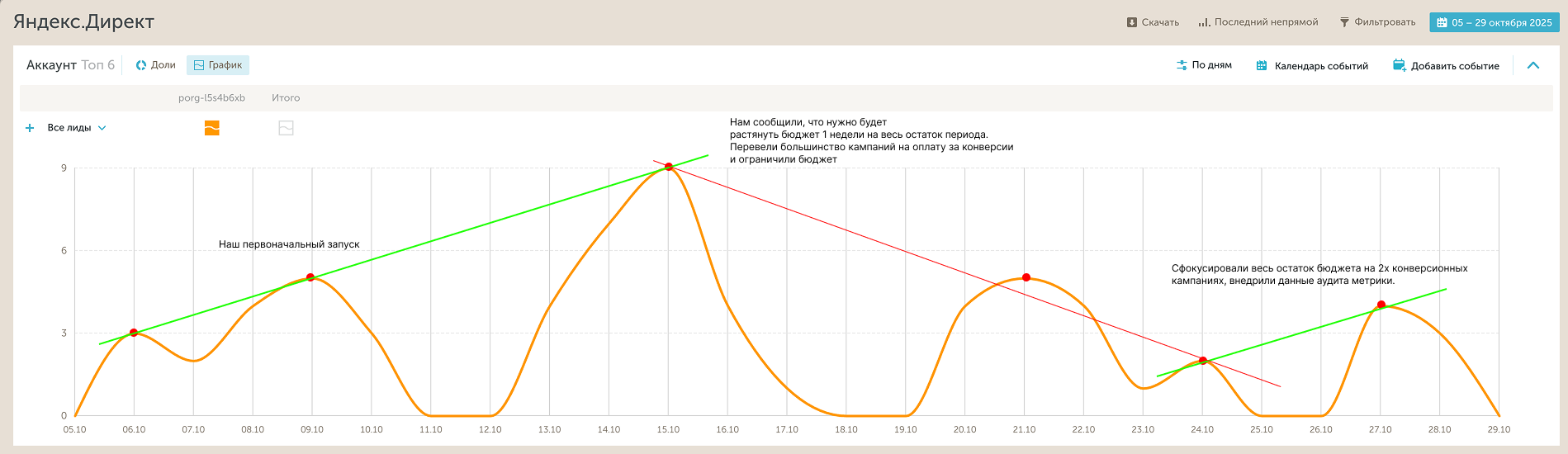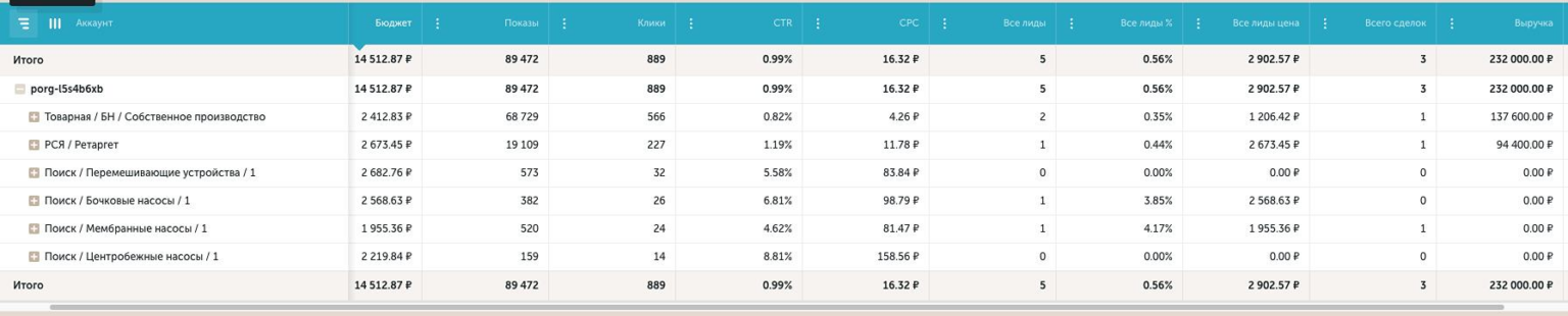 P.S. После завершения основных кампаний и сдачи корректной отчетности заказчику, на остаток бюджета мы оптимизировали и запустили лучшую по конверсионности кампанию, по результатам которой получили еще 4 лида и 2 сделки. Данные показатели мы не брали в статистику основного отчета по РК.
