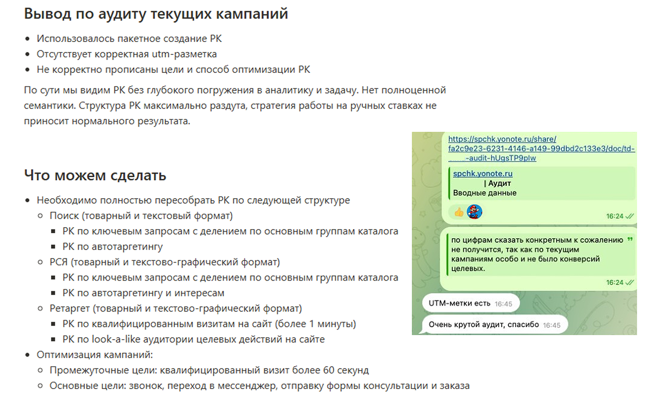 Мы провели тщательный аудит текущих рекламных кампаний и выявили следующие проблемы: